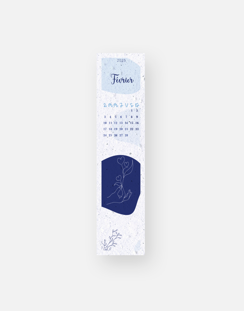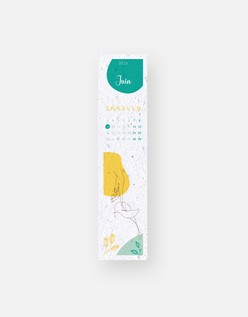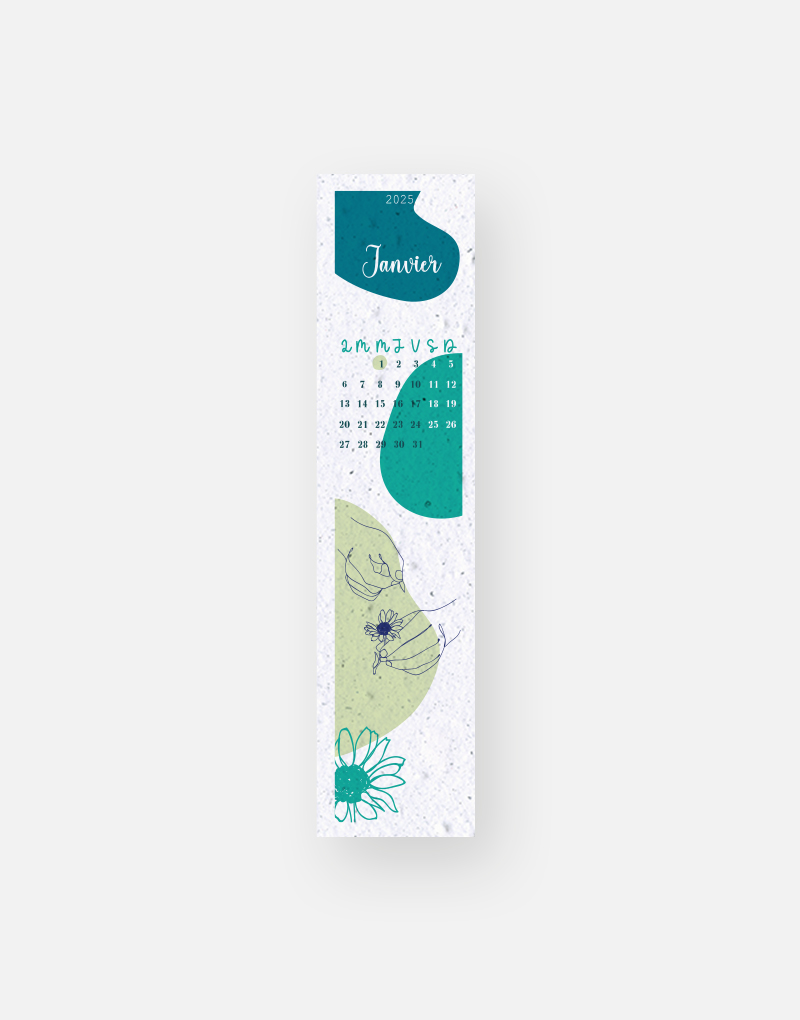 Découvrez notre collection unique de marque-pages à planter illustré par la talentueuse Minoé12 marque-pages calendrier colorés, ornés de mains et de fleurs. Marques pages en papier justement ensemencé de graines de fleurs des champs. Les 12 mois de l’année 2025 en fleurs ! Des marque-pages biodégradables imprimés sur du papier ensemencé de haute qualité, composé de matériaux durables et respectueux de l’environnement. Une fois le mois passé et vos lectures terminées plantez le marque page ! Un joli cadeau à garder pour soi ou distribuer à ses proches. Pour faire fleurir vos marque-pages c’est facile : imbibez le papier d’eau, plantez-le sous une fine couche de terre, arrosez-la bien et en quelques jours les premières pousses apparaissent.