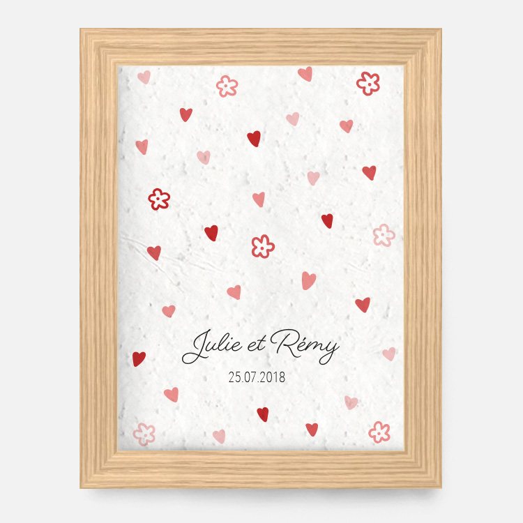 Cette affiche personnalisable est imprimée sur du papier ensemencé. Ce papier, biodégradable et compostable, est fabriqué à partir de fibres recyclées. Il est serti de graines et peut être planté. À toutes les étapes de la fabrication et de l’impression, nous faisons en sorte que soient préservés les qualités germinatoires et le caractère éco-responsable de nos produits.