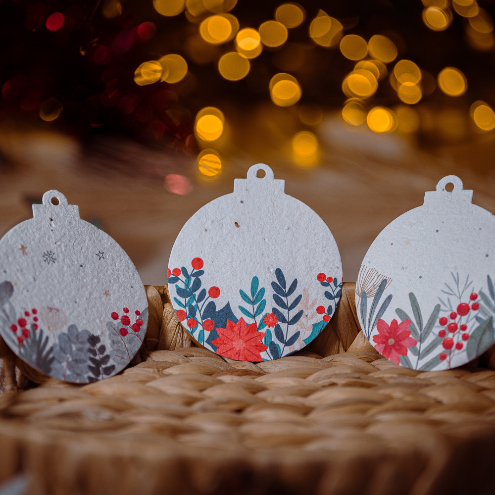 Pour Noël ornez votre sapin de décorations en papier ensemencé ! Décorations de Noël originales et éco-responsable. Plantez vos boules ou étoiles de Noël après les fêtes pour faire durer la magie.