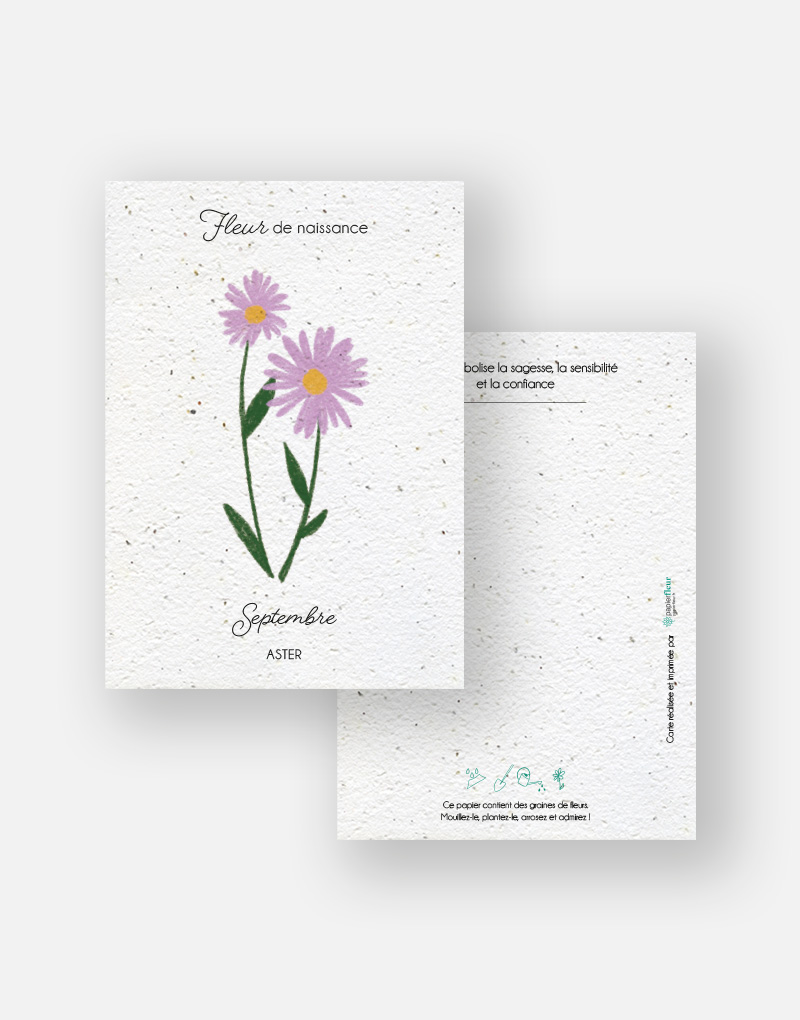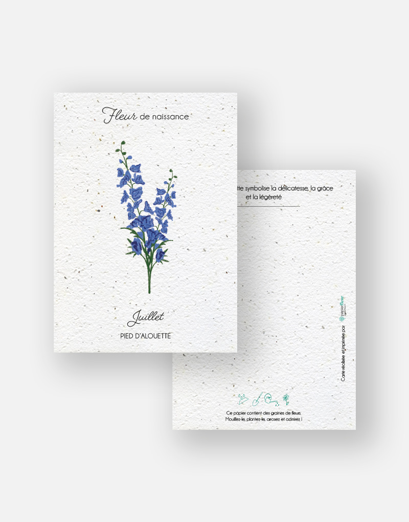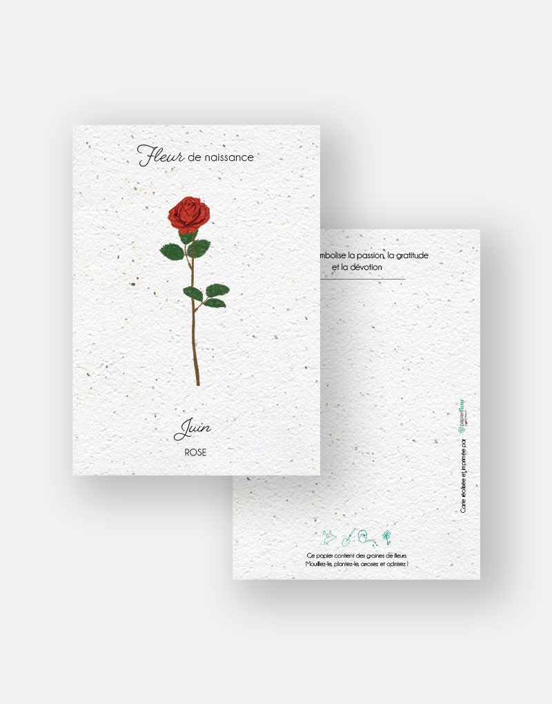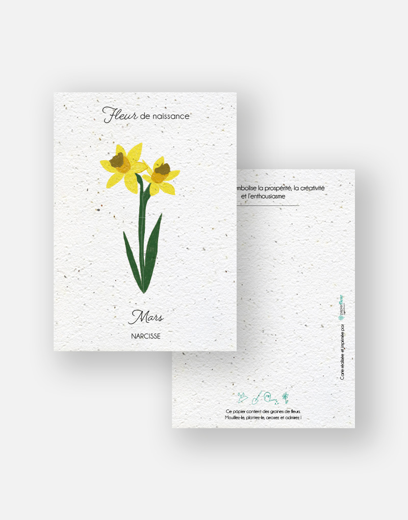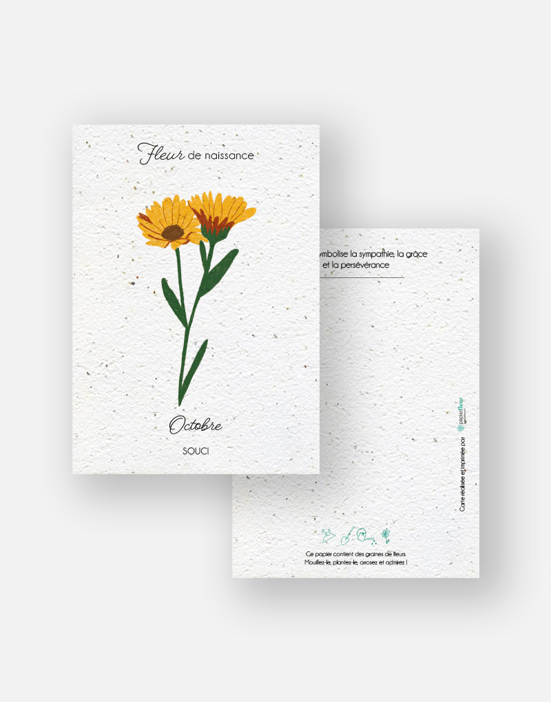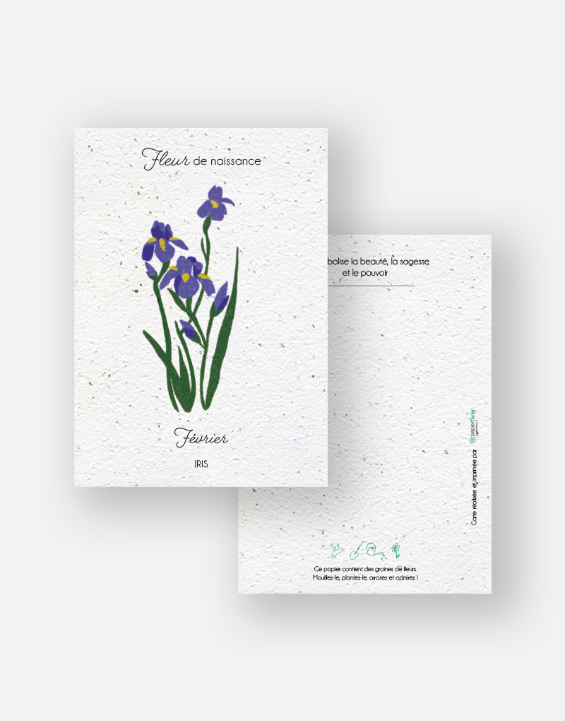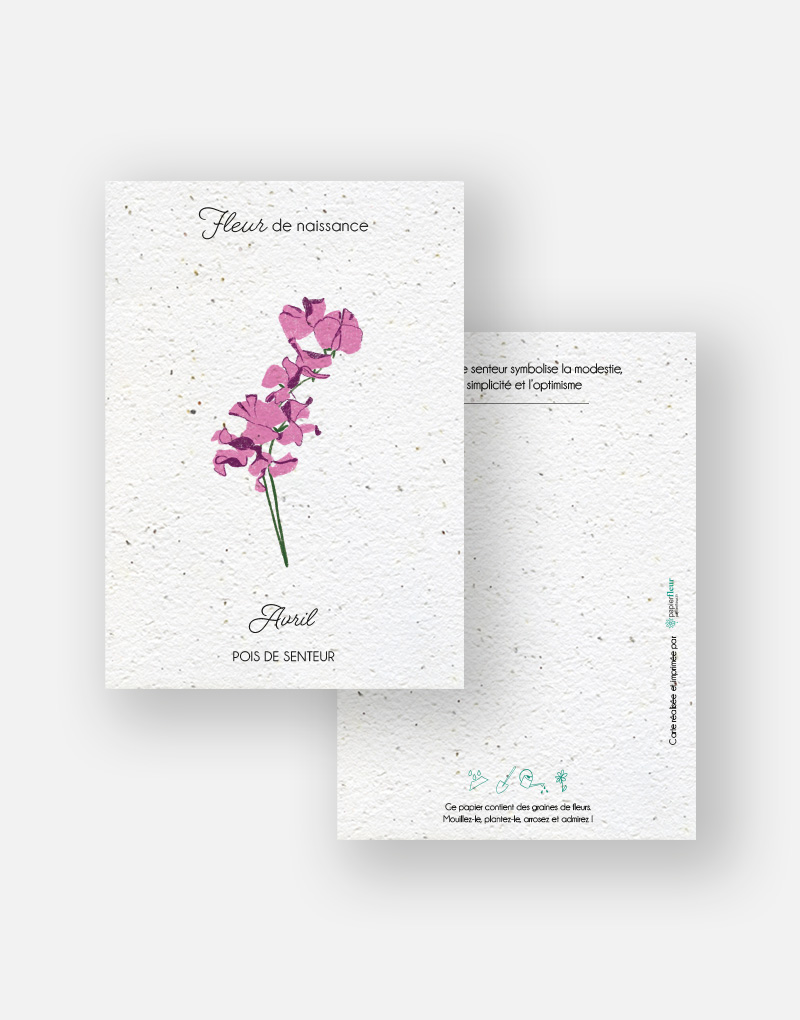 Cette carte est imprimée sur du papier ensemencé. Ce papier, biodégradable et compostable, est fabriqué à partir de fibres recyclées. Il est serti de graines et peut être planté. À toutes les étapes de la fabrication et de l’impression, nous faisons en sorte que soient préservés les qualités germinatoires et le caractère éco-responsable de nos produits.