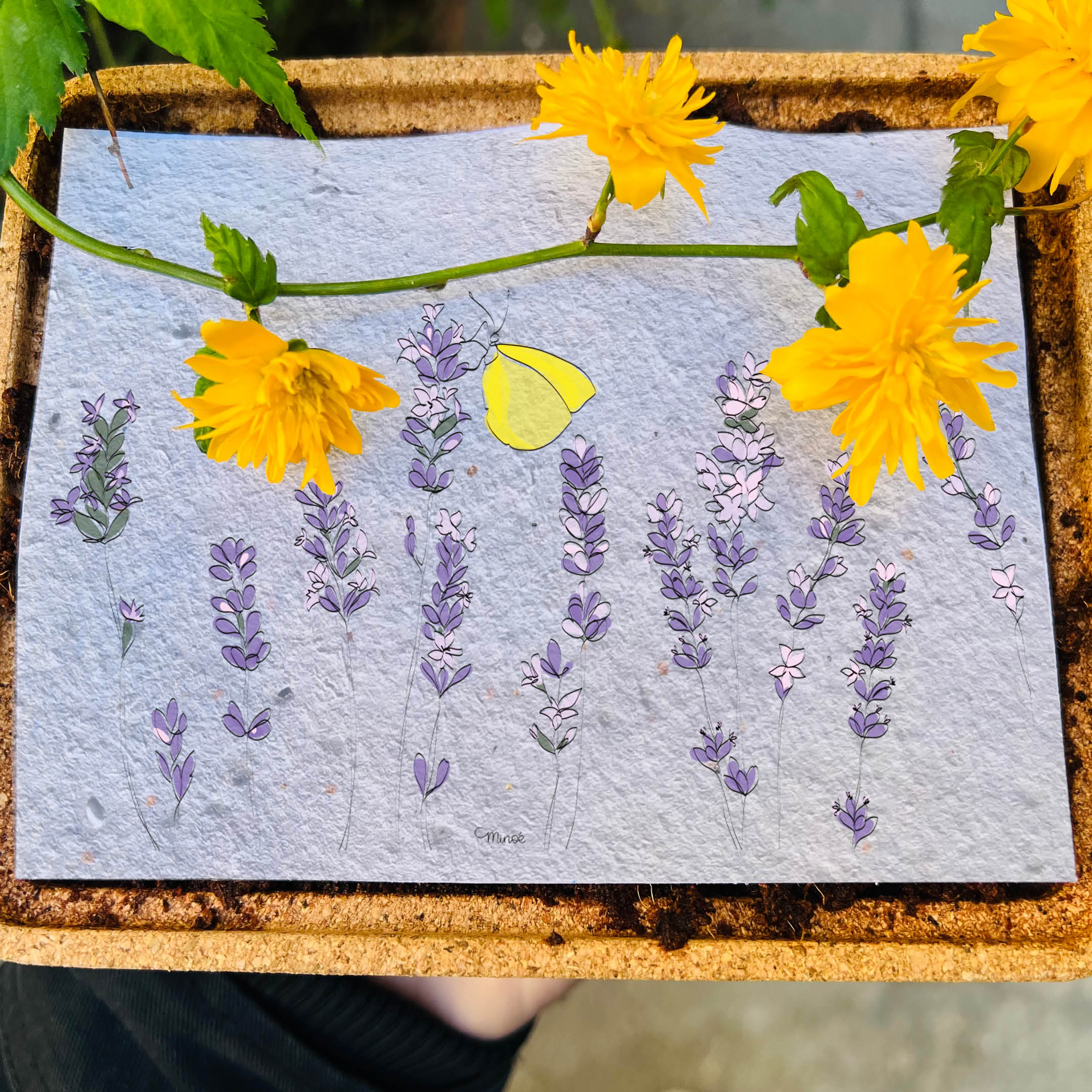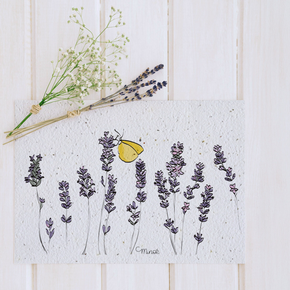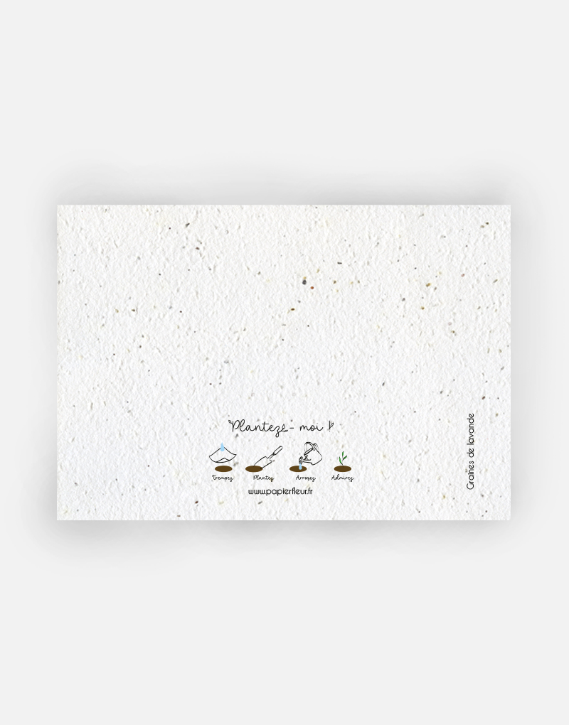 Cette carte est imprimée sur du papier ensemencé. Ce papier, biodégradable et compostable, est fabriqué à partir de fibres recyclées. Il est serti de graines et peut être planté. À toutes les étapes de la fabrication et de l’impression, nous faisons en sorte que soient préservées les qualités germinatives et le caractère éco-responsable de nos produits.