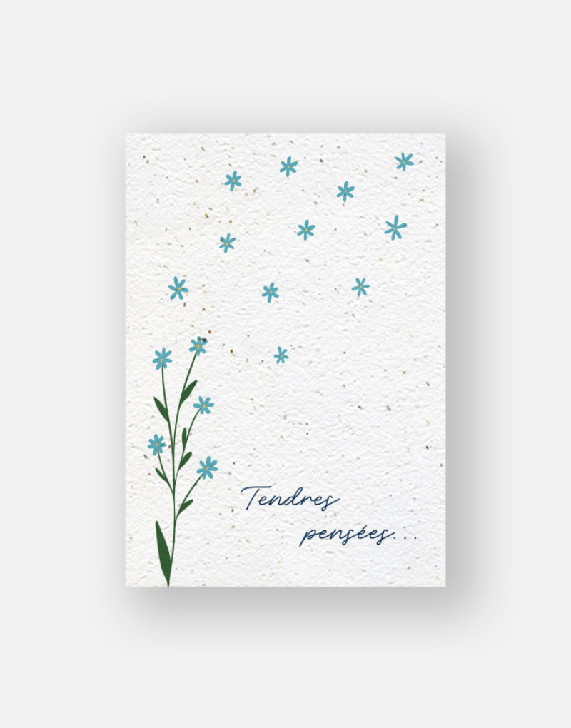 Cette carte est imprimée sur du papier ensemencé. Ce papier, biodégradable et compostable, est fabriqué à partir de fibres recyclées. Il est serti de graines et peut être planté. À toutes les étapes de la fabrication et de l’impression, nous faisons en sorte que soient préservés les qualités germinatoires et le caractère éco-responsable de nos produits.