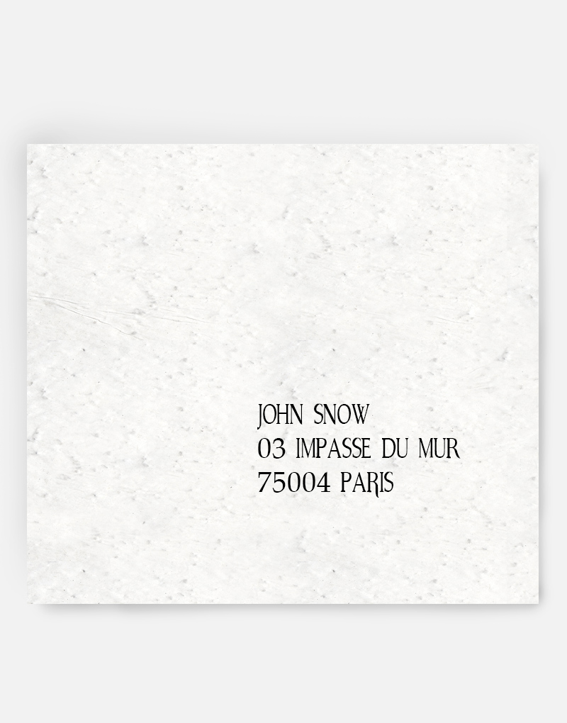 Cette enveloppe est imprimée sur du papier ensemencé. Ce papier, biodégradable et compostable, est fabriqué à partir de fibres recyclées. Il est serti de graines et peut être planté. À toutes les étapes de la fabrication et de l’impression, nous faisons en sorte que soient préservés les qualités germinatoires et le caractère éco-responsable de nos produits.