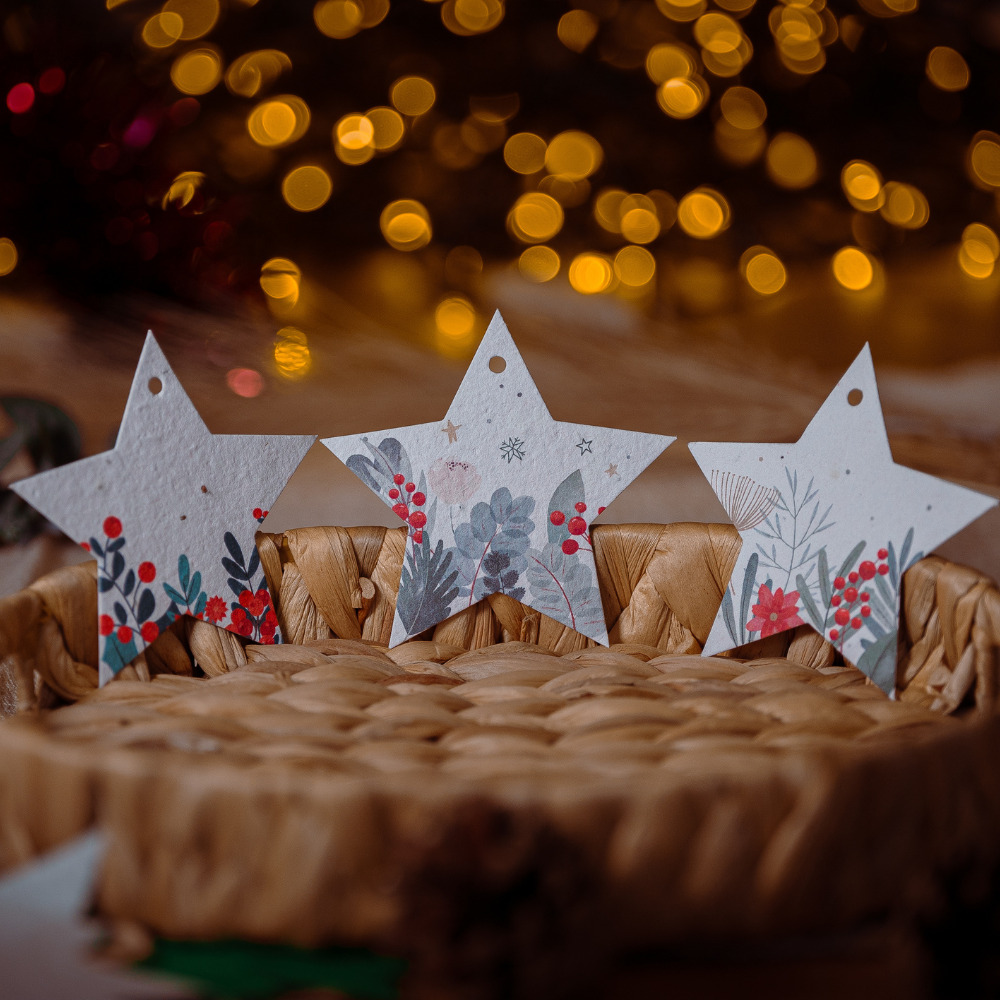 Pour Noël ornez votre sapin de décorations en papier ensemencé ! Décorations de Noël originales et éco-responsable. Plantez vos boules ou étoiles de Noël après les fêtes pour faire durer la magie.