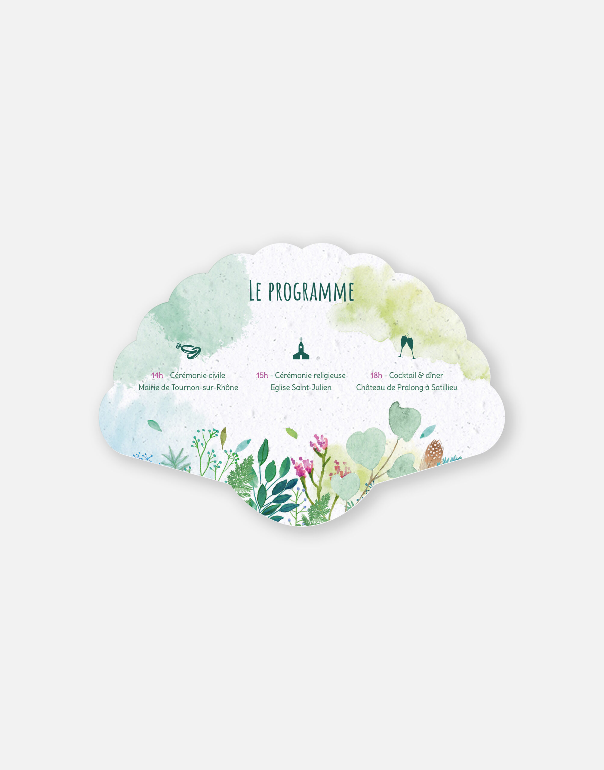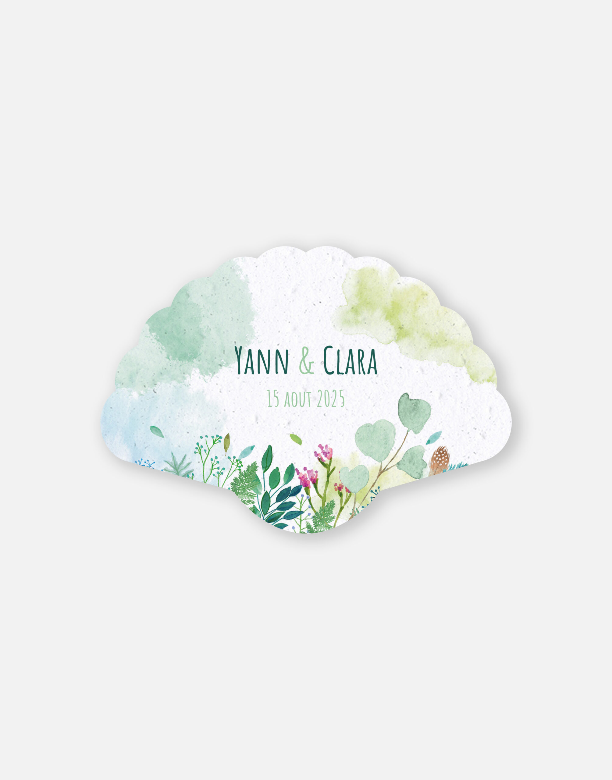 Ce faire-part est imprimé sur du papier ensemencé. Ce papier, biodégradable et compostable, est fabriqué à partir de fibres recyclées. Il est serti de graines et peut être planté. À toutes les étapes de la fabrication et de l’impression, nous faisons en sorte que soient préservés les qualités germinatoires et le caractère éco-responsable de nos produits.