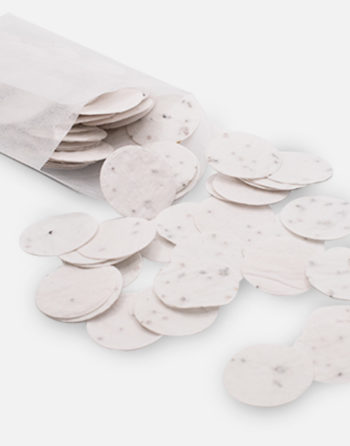 Des enveloppes biodégradables 100g/m² ensemencées de graines de fleurs sauvages. Les graines peuvent un peu gêner l’écriture, vous pouvez y apposer des étiquettes pour un rendu plus net.