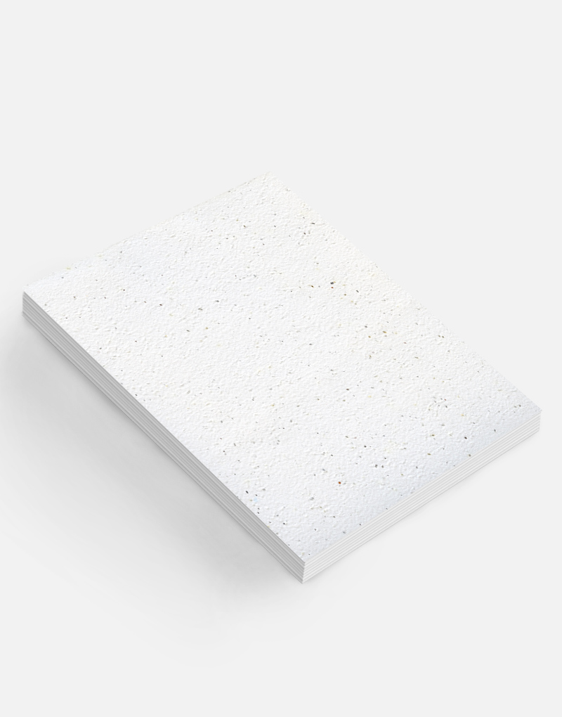 Ce papier, biodégradable et compostable, est fabriqué à partir de fibres recyclées. Il est serti de graines et peut être planté. À toutes les étapes de la fabrication et de l’impression, nous faisons en sorte que soient préservés les qualités germinatoires et le caractère éco-responsable de nos produits.
