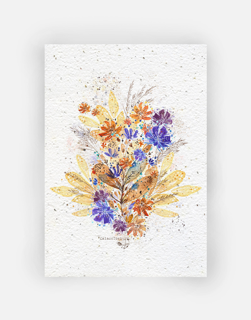 Ces cartes sont imprimées sur du papier ensemencé. Ce papier, biodégradable et compostable, est fabriqué à partir de fibres recyclées. Silence.. ça pousse ! Il est serti de graines et peut être planté. À toutes les étapes de la fabrication et de l’impression, nous faisons en sorte que soient préservés les qualités germinatoires et le caractère éco-responsable de nos produits.