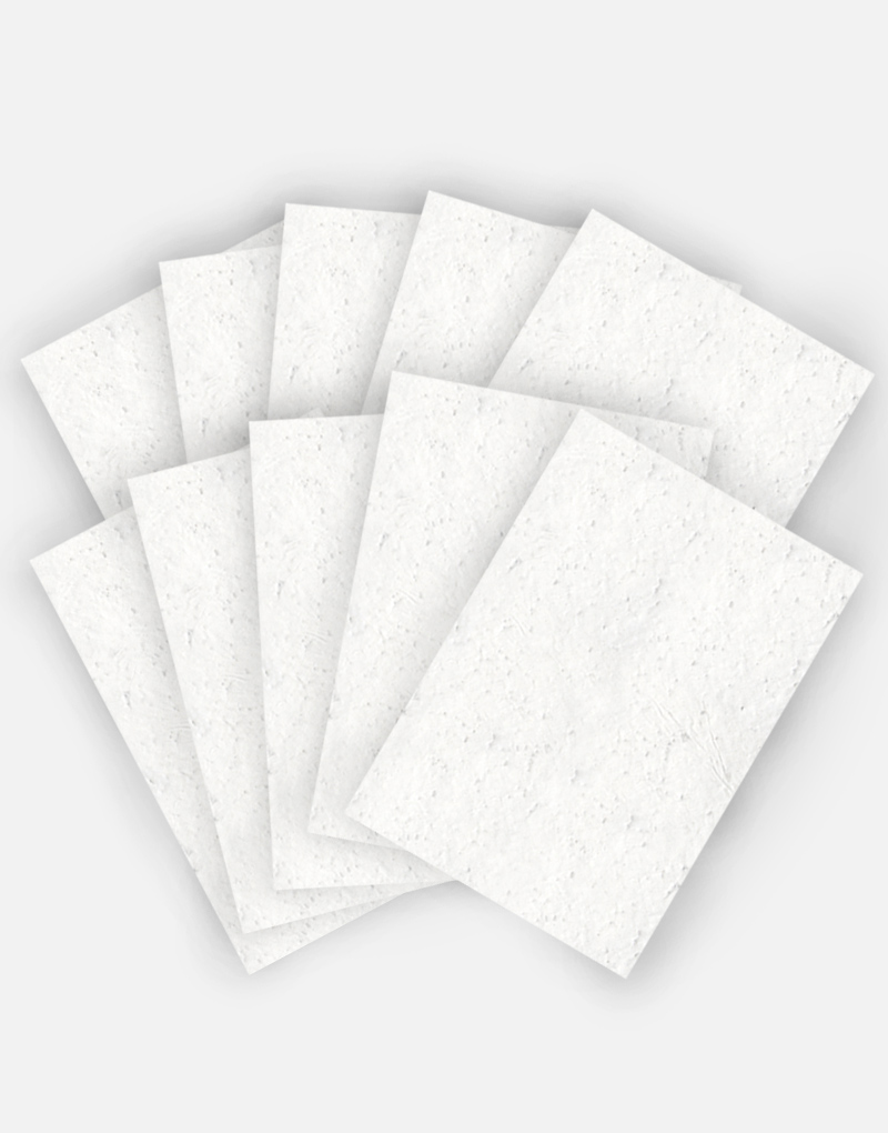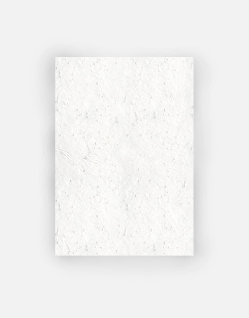 Ce papier, biodégradable et compostable, est fabriqué à partir de fibres recyclées. Il est serti de graines et peut être planté. À toutes les étapes de la fabrication et de l’impression, nous faisons en sorte que soient préservés les qualités germinatoires et le caractère éco-responsable de nos produits.