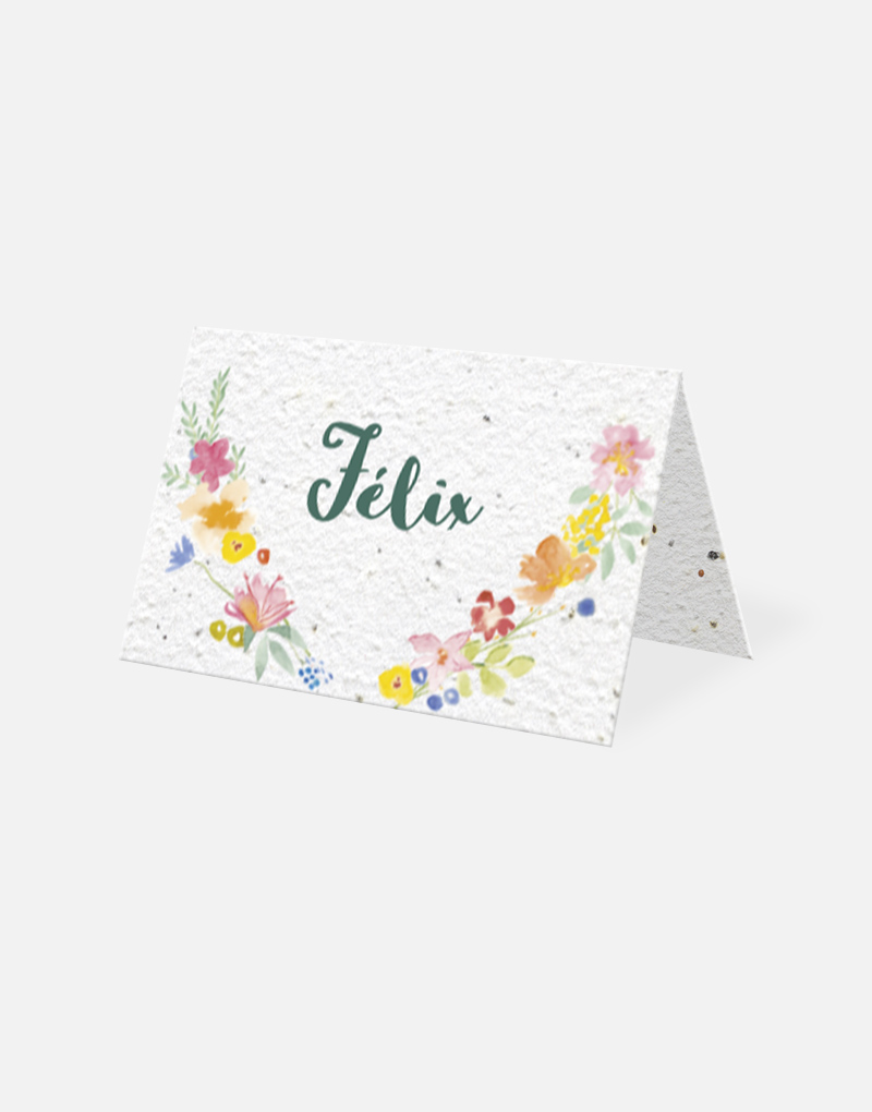 Ce marque-place est imprimé sur du papier ensemencé. Ce papier, biodégradable et compostable, est fabriqué à partir de fibres recyclées. Il est serti de graines et peut être planté. À toutes les étapes de la fabrication et de l’impression, nous faisons en sorte que soient préservés les qualités germinatoires et le caractère éco-responsable de nos produits.