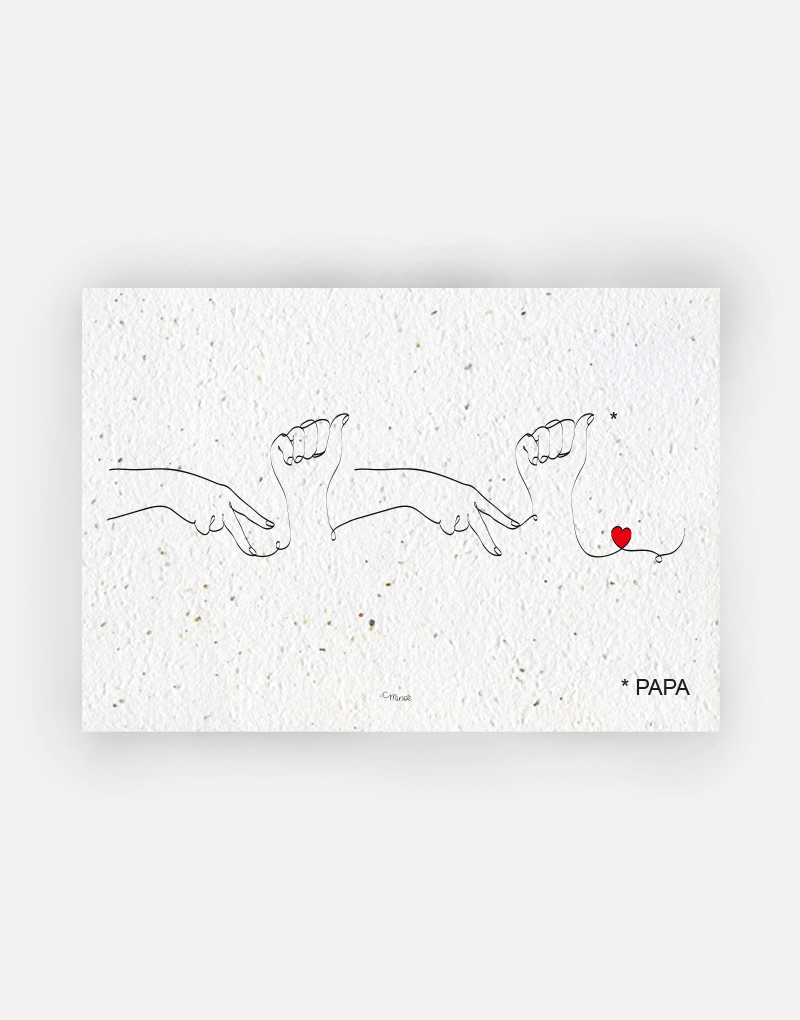 Cette carte est imprimée sur du papier ensemencé. Ce papier, biodégradable et compostable, est fabriqué à partir de fibres recyclées. Il est serti de graines et peut être planté. À toutes les étapes de la fabrication et de l’impression, nous faisons en sorte que soient préservés les qualités germinatoires et le caractère éco-responsable de nos produits.